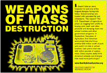 | As part of an ad campaign launched October 14 by the Physicians Committee for Responsible Medicine, a blaring full-age advertisement shouts that school lunches are nothing less than "Weapons of Mass Destruction." The text of the advertisement reads, in part; "The US Department of agriculture props up sagging farm profits by buying pork, beef, and other products and dumping them into school lunches and other government programs."