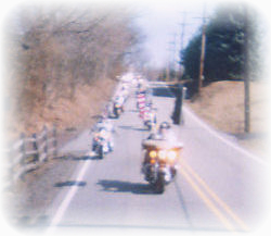 The short trip to the rally was scenic, but no sight caused more excitement than the motorcade directly behind us, a motorcycle club - a column of bikers stretching off as far as we could see, with huge American flags attached to either side of the bikes. We hooted and hollered and waved our flags and the feeling was sublime.