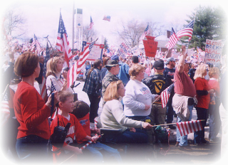 Today there are a quarter of a million American men and women prepared to risk their own lives in yet another battle for our freedom. Here on this sacred ground, more than ten thousand patriots gathered to honor those men and women, and to provide a highly visible response to the anti-American images that have been transmitted to those troops by the media obsession with protest.